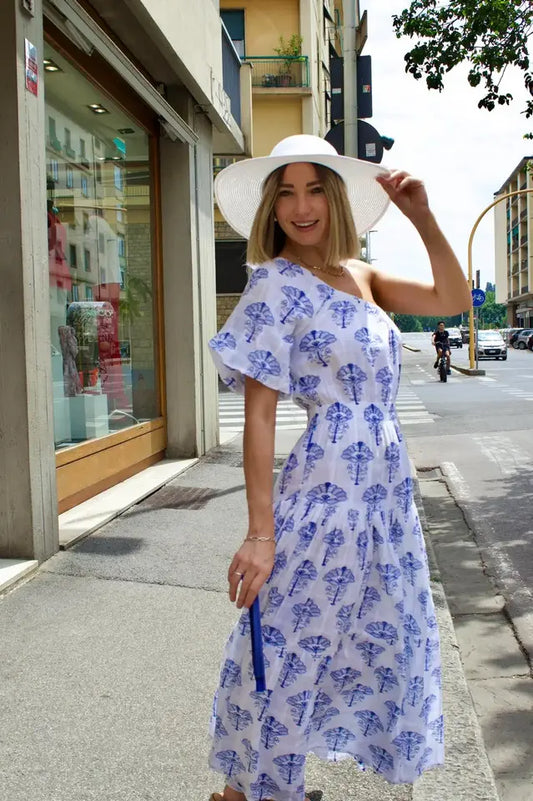 Abito monospalla a fiori